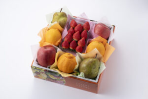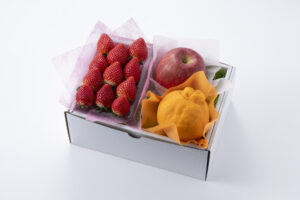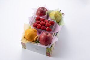 内容:長野県産or青森県産サンふじ2個、熊本県産デコポン1個、山形県産ラ・フランス1個、愛知県産or栃木県産いちご